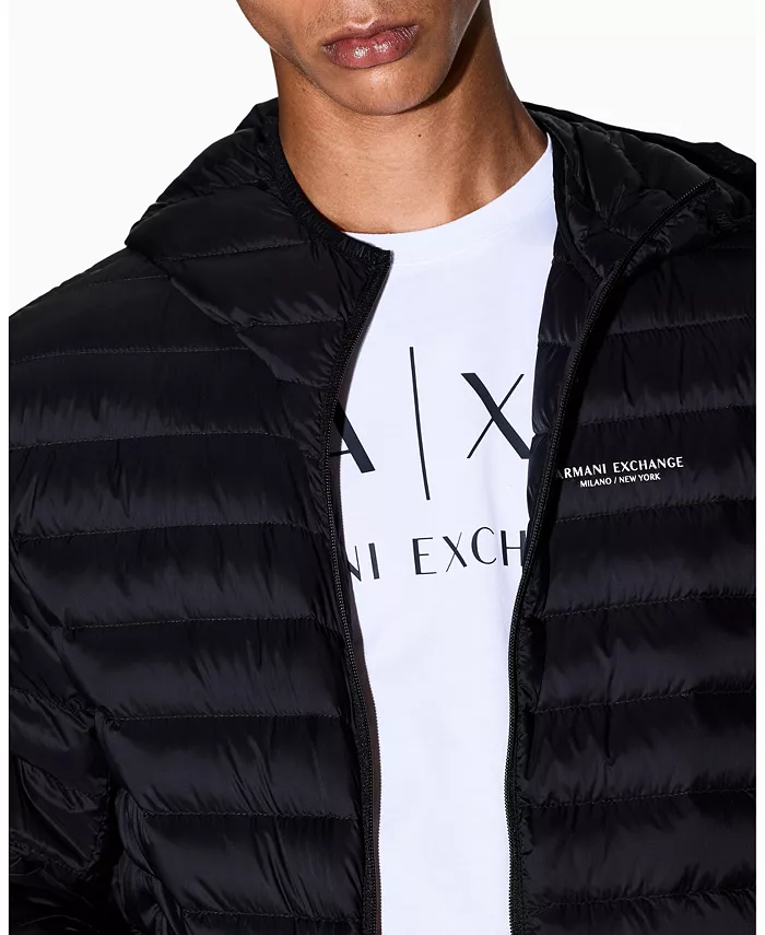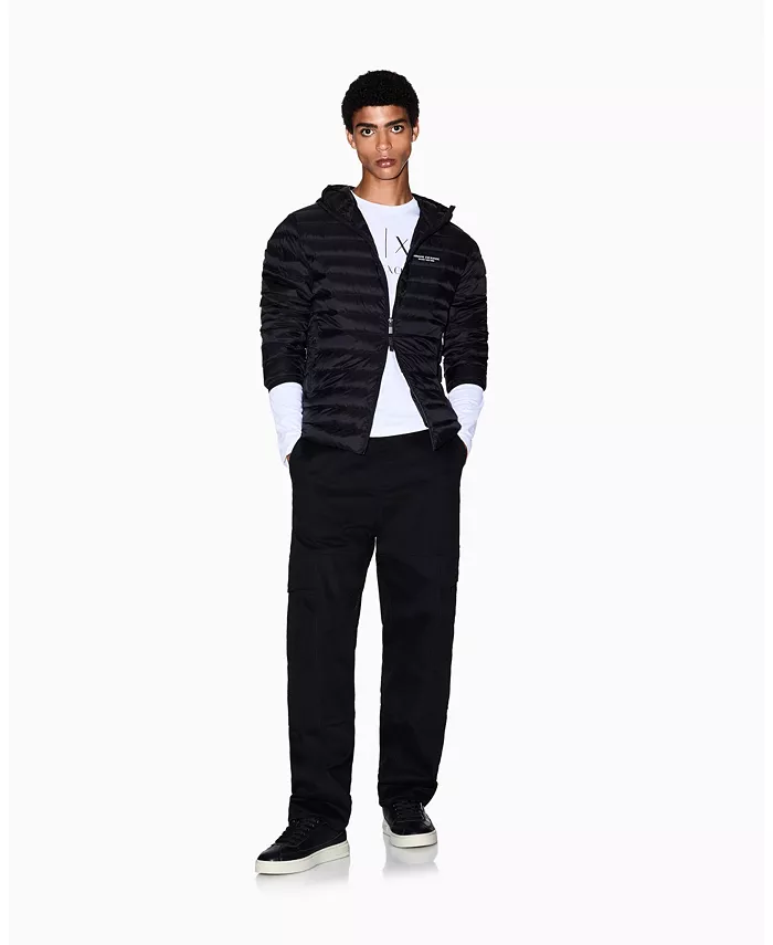 Сохраняйте тепло, не создавая громоздкого эффекта, в этой черной пуховике от Armani Exchange. Легкая и компактная, она имеет капюшон, карманы на молнии и эффектную горизонтальную стежку. Фирменный логотип Armani Exchange Milano New York на груди придает образу элегантный городской стиль.