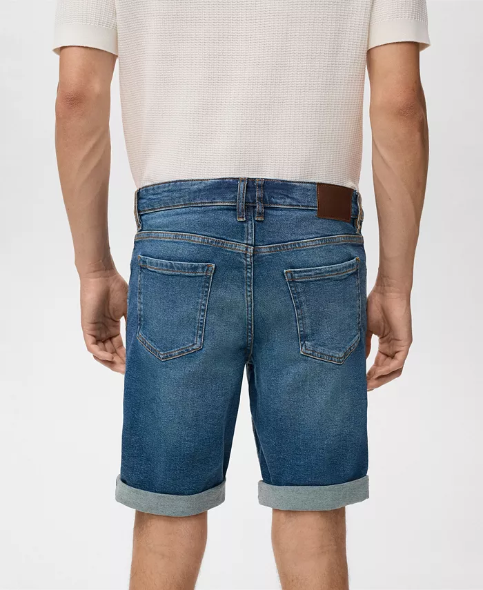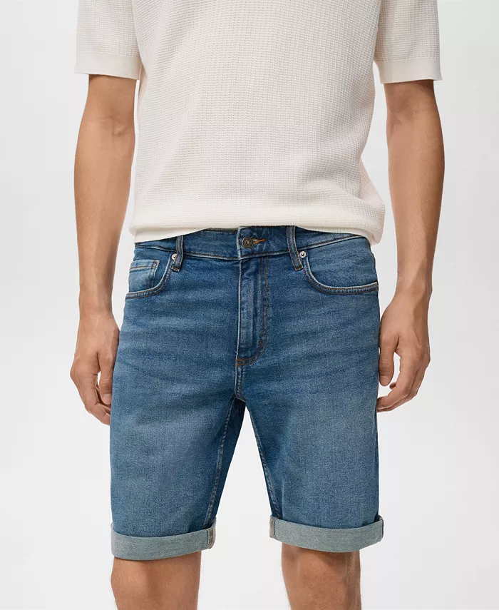 Сохраняйте форму и стильный вид в облегающих джинсовых шортах-бермудах от Mango. Эти облегающие шорты из хлопковой ткани, похожей на деним, имеют шлевки для ремня, застежку на молнию и пуговицы, боковые карманы, карманы для монет и два накладных кармана сзади.