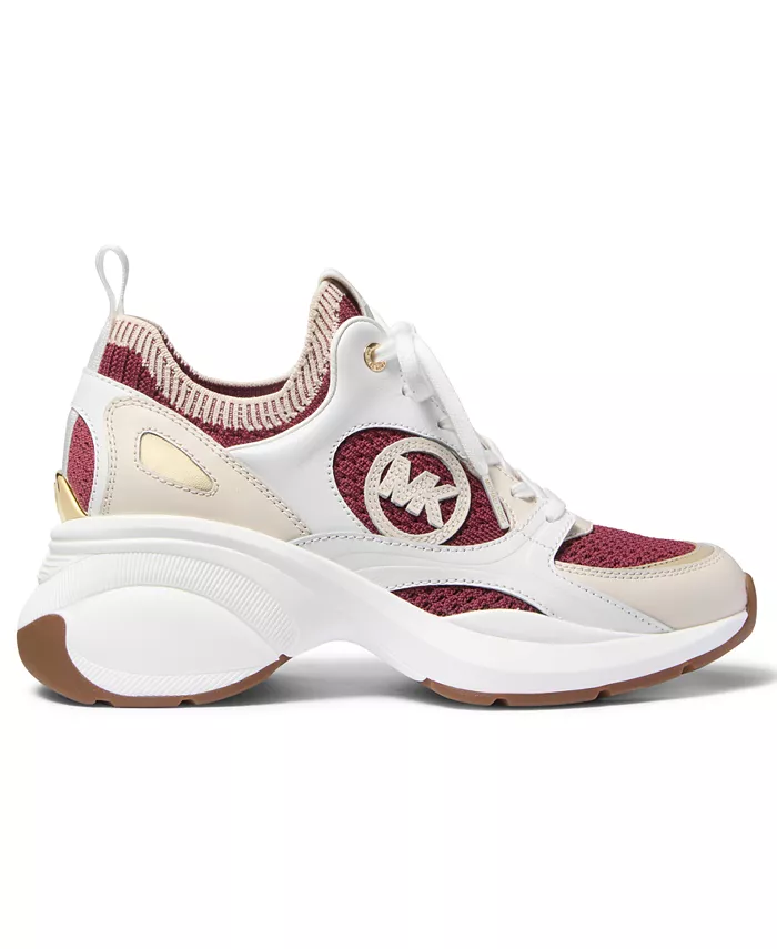 Спортивные кроссовки MICHAEL Michael Kors Zuma на танкетке с дизайном в смешанной технике и классической шнуровкой превращают образ повседневной обуви в элегантную модель.