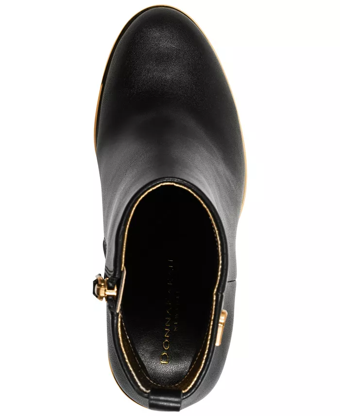 Стильные и удобные ботильоны Donna Karan New York с круглым носком и танкеткой для легкого подъема. Стандартная ширина голени и застежка-молния обеспечивают легкую и элегантную посадку.