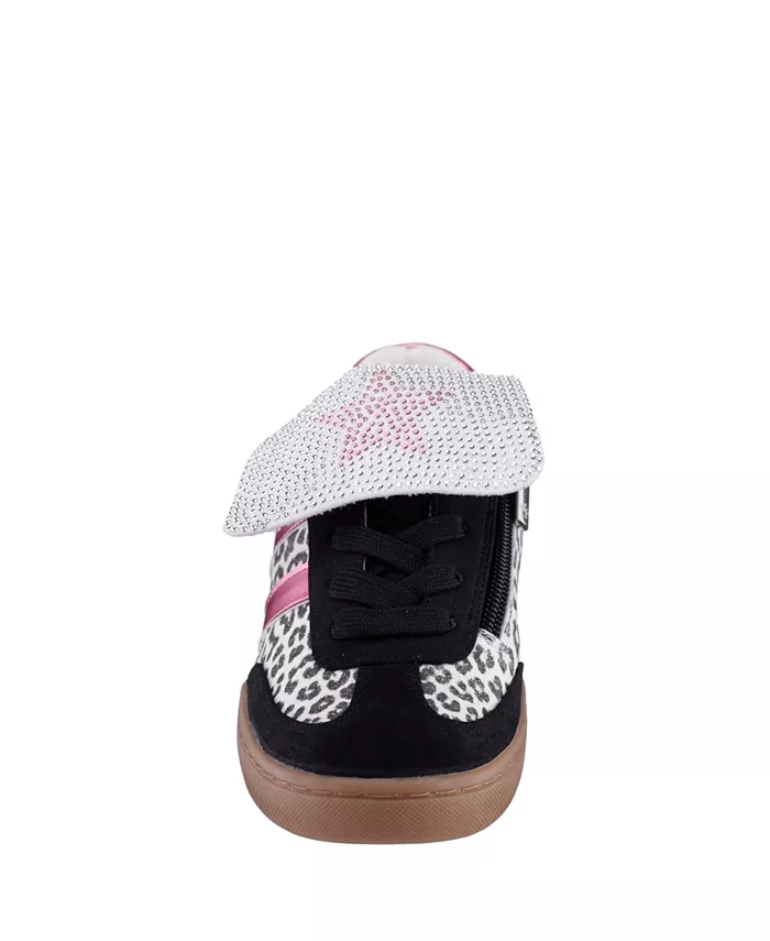 Стильные, блестящие и невероятно стильные - Cruise by Nina - идеальные повседневные низкие кроссовки с гламурным акцентом. Украшенные эффектными заклепками Rhine и фирменной фурнитурой, эти кроссовки излучают индивидуальность. Двойная шнуровка и застежка-молния позволяют легко собраться, а круглый носок и стелька из пены с эффектом памяти обеспечивают комфорт на весь день. В школу, на детский праздник или на прогулку на выходных Круз выглядит стильно, а походка - уверенной.