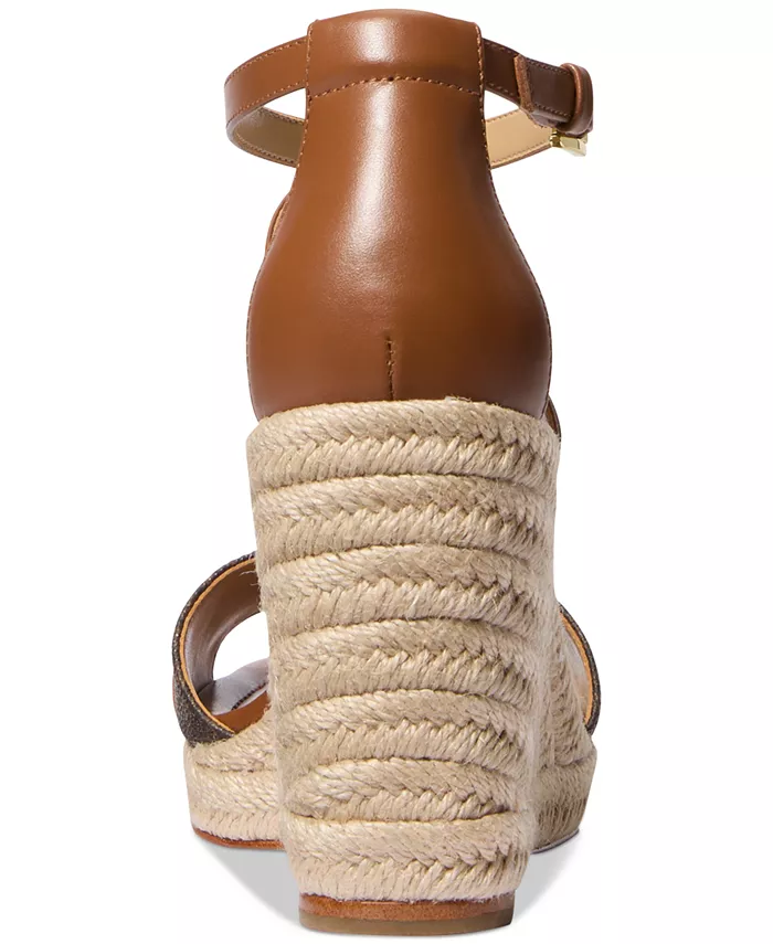 Тонкие перекрещивающиеся ремешки на танкетке-эспадрильи - незаменимый образ для работы или отдыха на выходных в босоножках Mandy от MICHAEL Michael Kors.