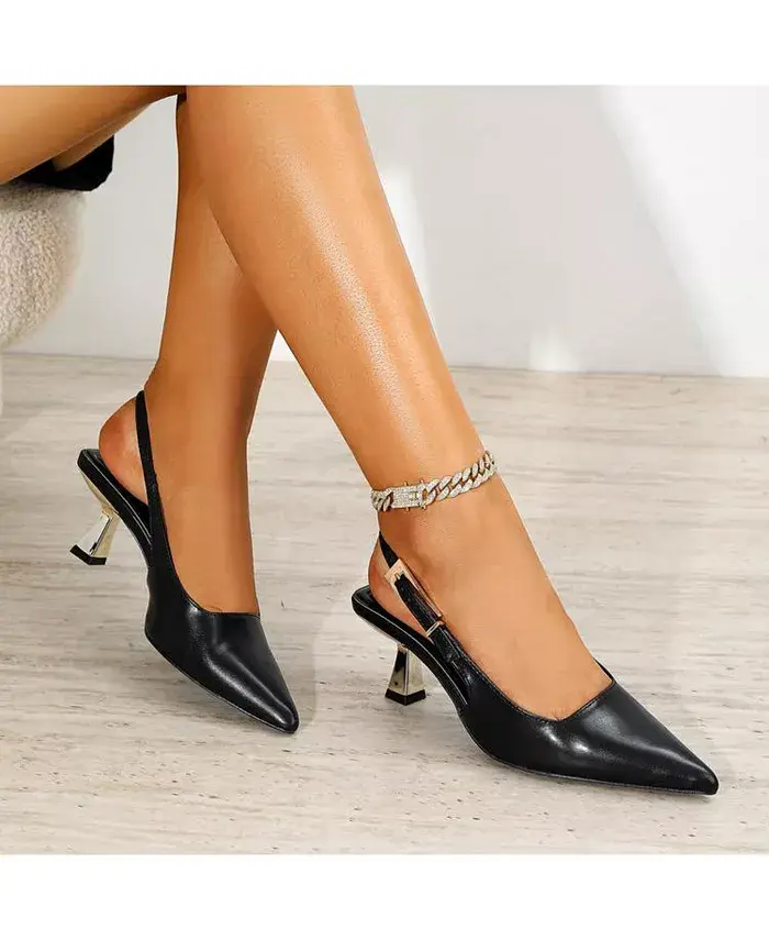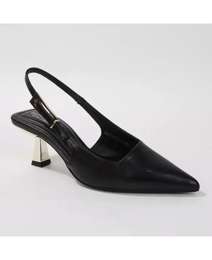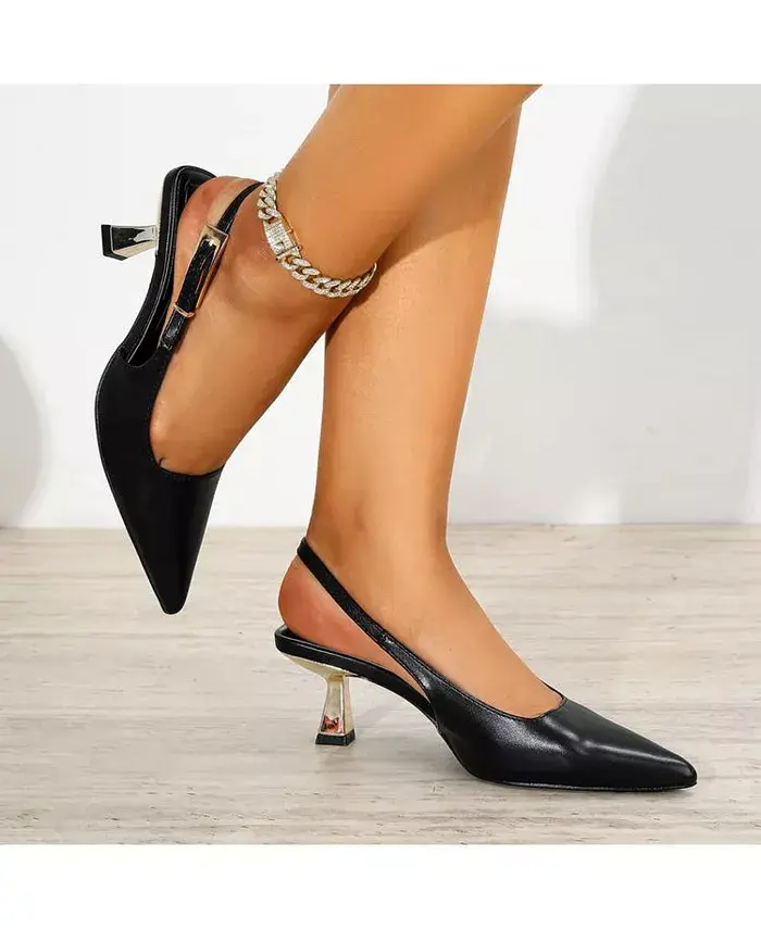 Туфли Cassandra-2 с открытой пяткой отличаются современным металлическим каблуком-рюмочкой и удлиненной пряжкой в тон. Квадратный верх и острый носок дополняют силуэт.