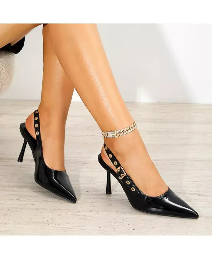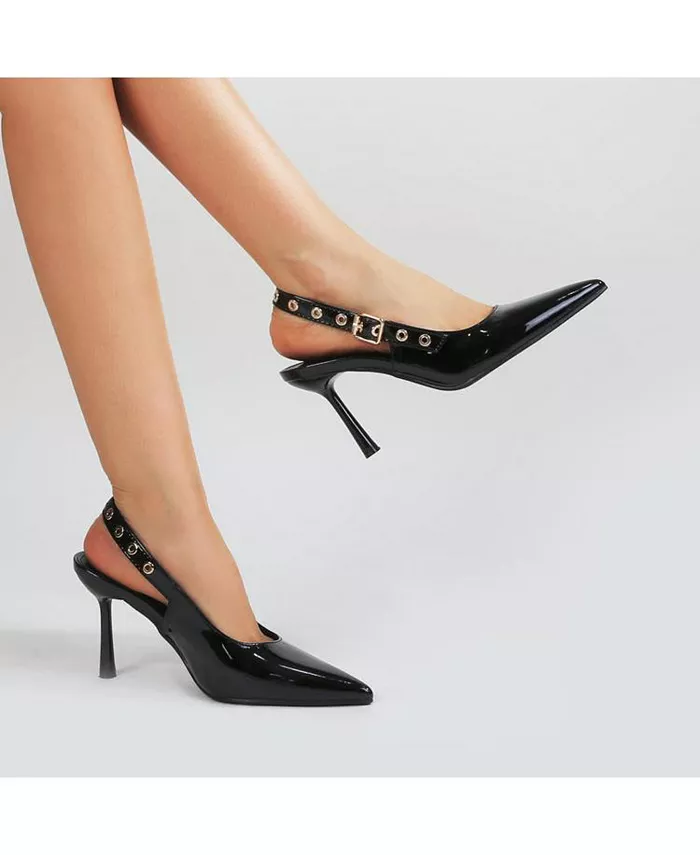 Туфли с открытой пяткой Candes отличаются ярким ремешком с люверсами и гладким острым носком, создавая идеальное сочетание элегантности и изысканности.
