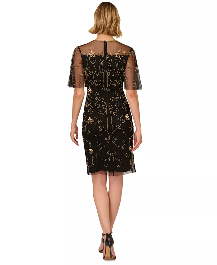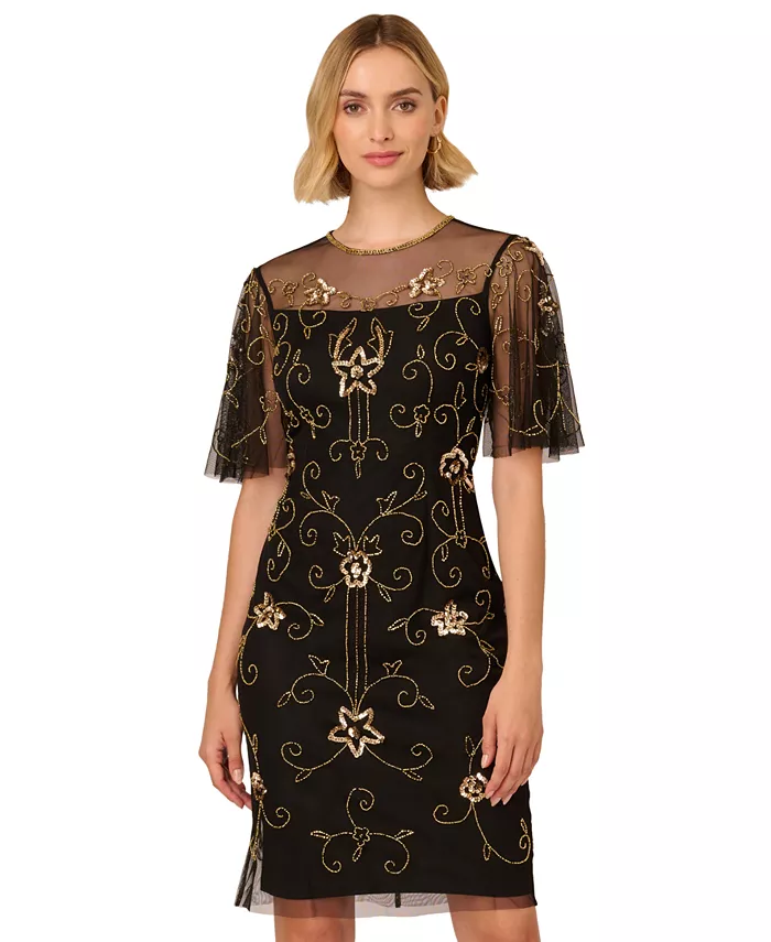 Усильте свой образ маленького черного платья с этим сверкающим коктейльным платьем от Adrianna Papell. Застежка-молния сзади создает идеальный облегающий силуэт. Сетчатый верх создает иллюзию выреза, дополненного развевающимися рукавами выше локтя. Пайетки и бисер с очаровательным цветочным мотивом по всей длине придают этому платью роскошный, украшенный украшениями вид.