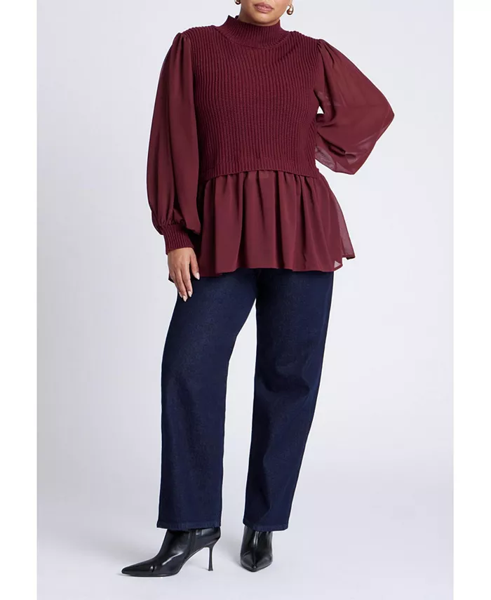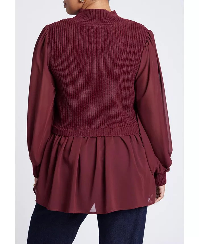 Уютная водолазка в рубчик контрастирует с воздушными шифоновыми рукавами и присборенными манжетами.