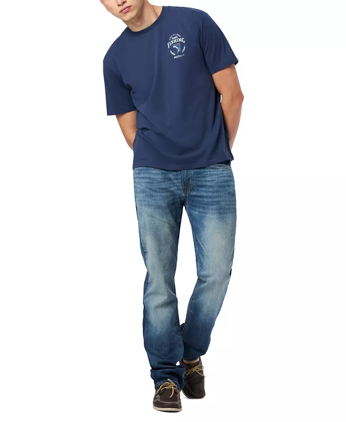 Футболка с принтом Tiernan от Buffalo David Bitton привносит юмор в мир активного отдыха благодаря смелому принту «Hold My Beer, Gone Fishing» с изображением прыгающей рыбы, обвивающей банку. Рисунок спереди и сзади, свободный классический крой и классический круглый вырез горловины обеспечивают комфорт в течение всего дня и непринужденный стиль.