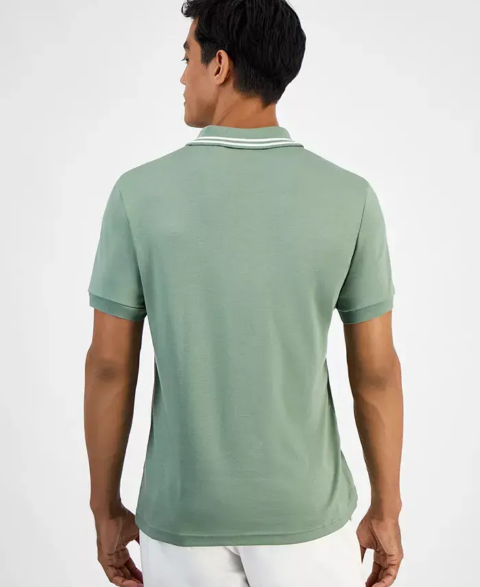 Хлопок пима интерлок, стандартный, прямой покрой, тонкие контрастные полоски на воротнике, пуговицы с эффектом резинки в тон, вышитый крокодил на груди