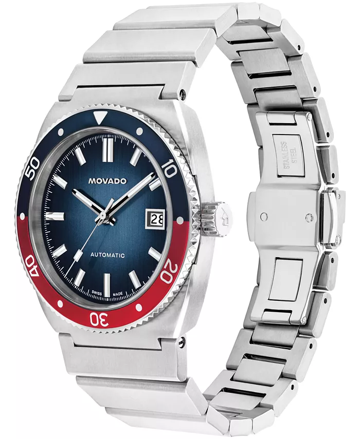 Часы Ondoplan из серии Heritage перекликаются с узнаваемым стилем нашей серии Electronic Surf 1970-х годов, подчеркнутым волнообразным рифленым безелем и интегрированным браслетом. Эти 39-миллиметровые часы из нержавеющей стали оснащены точным швейцарским автоматическим механизмом и отличаются сине-красным алюминиевым безелем, синим градиентным циферблатом, швейцарским люминесцентным покрытием Super-LumiNova, окошком даты и прозрачной задней крышкой.
