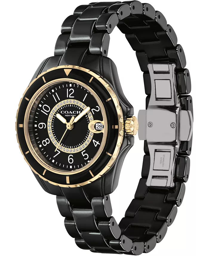 Часы Preston - элегантный выбор на каждый день. Изготовленные из прочной и легкой черной керамики, они украшены сверкающими кристаллами и золотистыми акцентами.