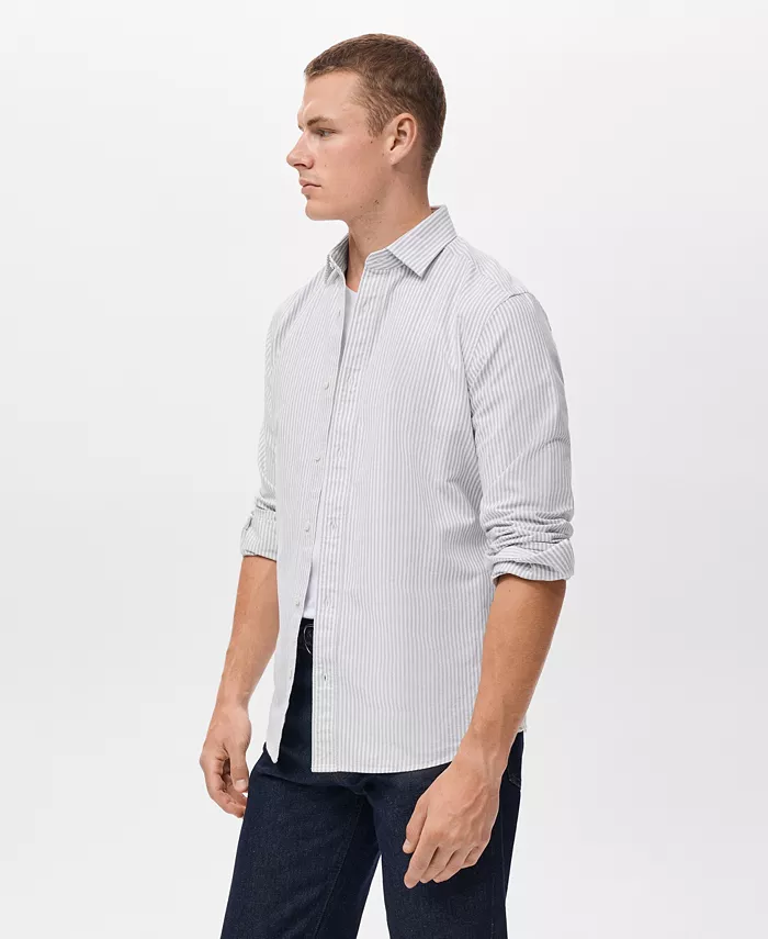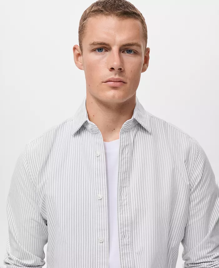 Четкие полоски сочетаются с простотой в полосатой рубашке Cotton Kodak от Mango.