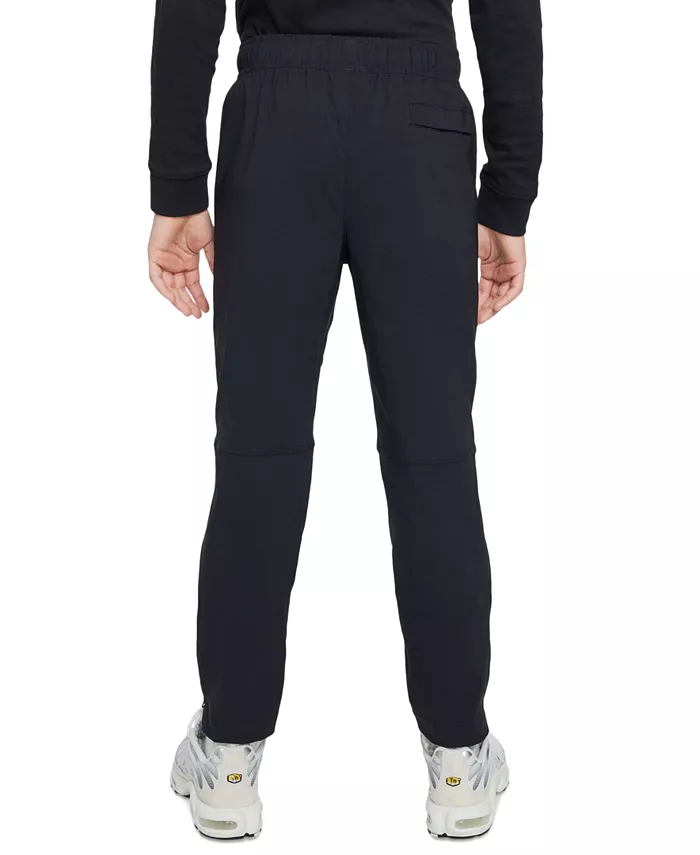 Эластичный, влагоотводящий материал делает эти зауженные брюки от Nike легкими и прочными. Молнии на щиколотках и немного увеличенный крой в области коленей обеспечат вашему ребенку свободу движений. Эти брюки, вдохновленные деталями из книги Nike Tech Playbook, имеют зауженные брючины, проклеенные карманы и анатомические колени.