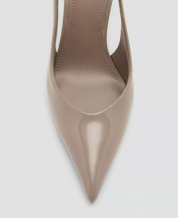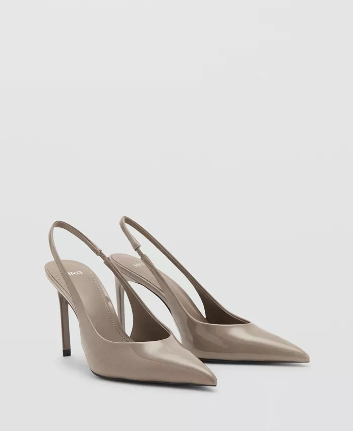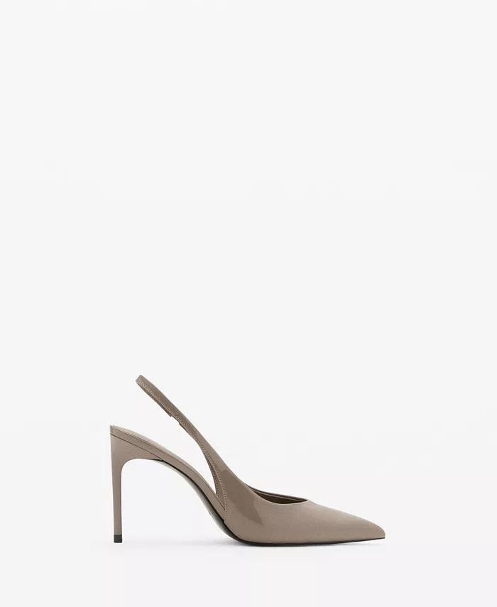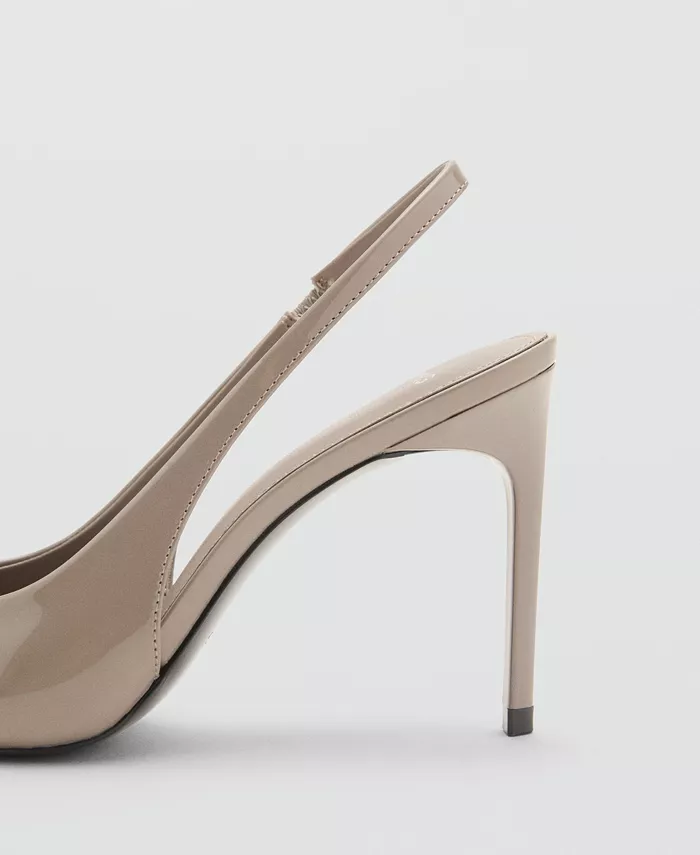 Элегантная отделка отличает туфли на лакированном каблуке от Mango. Изготовленные из полиуретана, эти туфли имеют открытый задник и острый носок на шпильке.