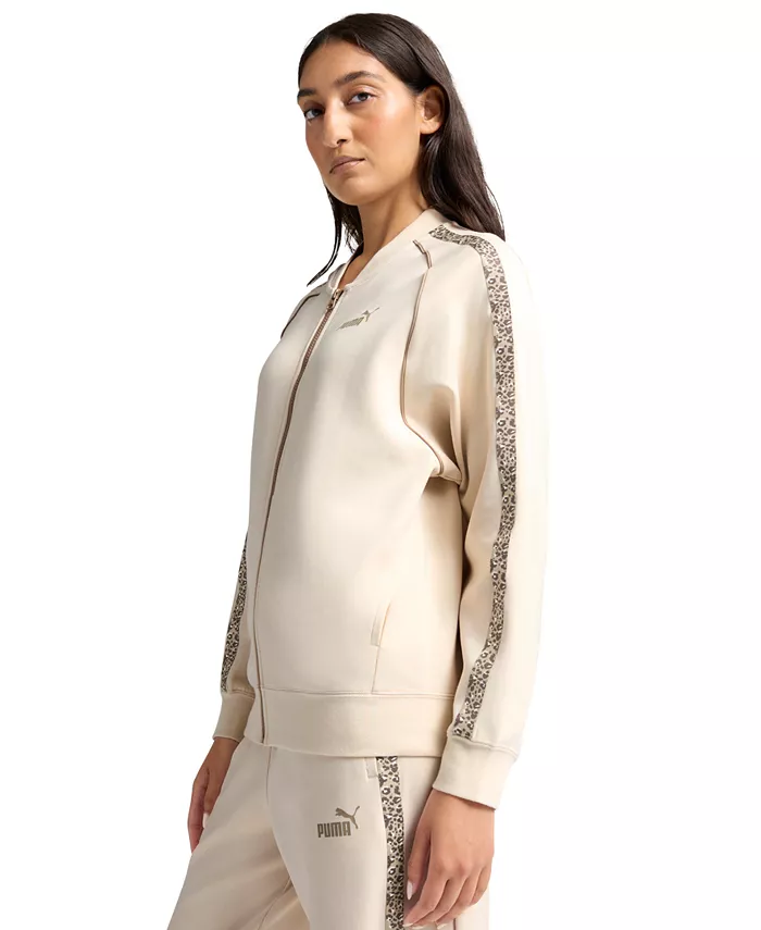 Эта куртка Puma, рожденная для победы, с воротником-стойкой и застежкой-молнией спереди. Длинные рукава украшены анималистичным принтом, удобные косые карманы по бокам и логотип бренда №1 на груди, придающий модели яркий вид.
