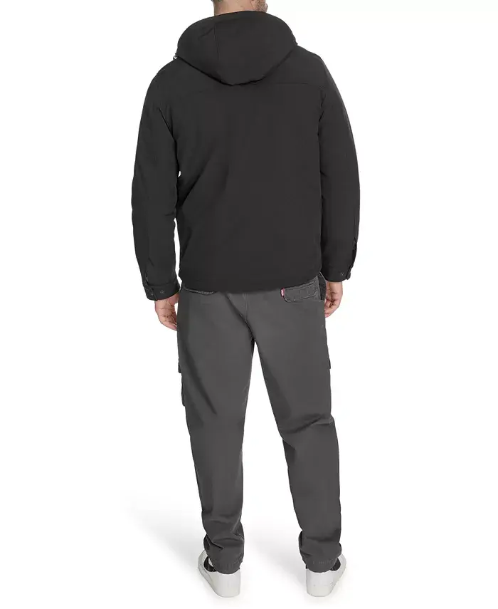 Эта куртка из софтшелла с капюшоном, созданная для повседневного ношения, сочетает в себе четкие линии и практичность. Она застегивается на молнию по всей длине спереди, имеет два нагрудных кармана с надежными клапанами на кнопках и удобные боковые карманы для удобного хранения. Куртка из прочной ткани идеально подходит для повседневных прогулок или легкого активного отдыха, сочетая комфорт, стиль и функциональность.