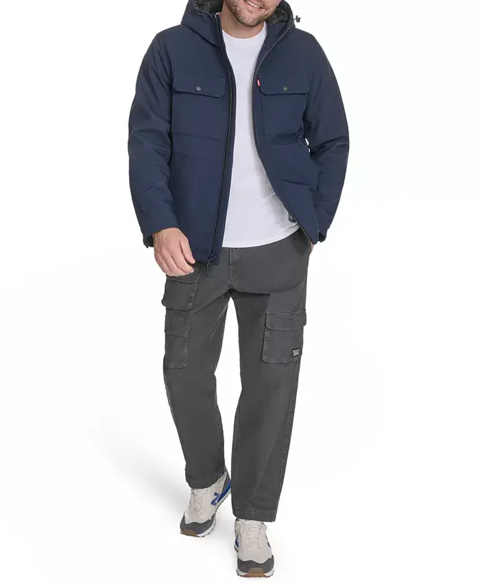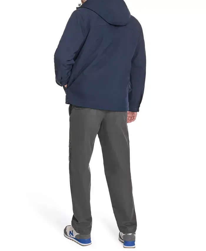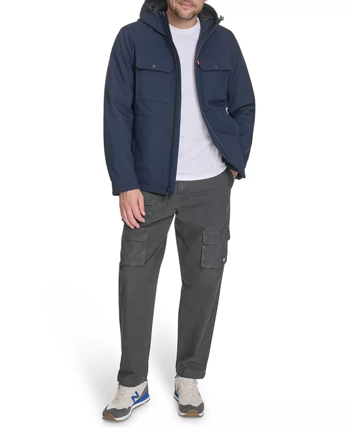 Эта куртка из софтшелла с капюшоном, созданная для повседневного ношения, сочетает в себе четкие линии и практичность. Она застегивается на молнию по всей длине спереди, имеет два нагрудных кармана с надежными клапанами на кнопках и удобные боковые карманы для удобного хранения. Куртка из прочной ткани идеально подходит для повседневных прогулок или легкого активного отдыха, сочетая комфорт, стиль и функциональность.