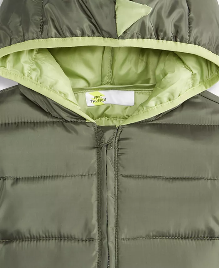 Эта куртка средней толщины Epic Threads, созданная в игривом стиле, вдохновленном динозаврами, с капюшоном и длинными рукавами для комфортной носки. Молния по центру спереди позволяет легко надевать и снимать куртку.