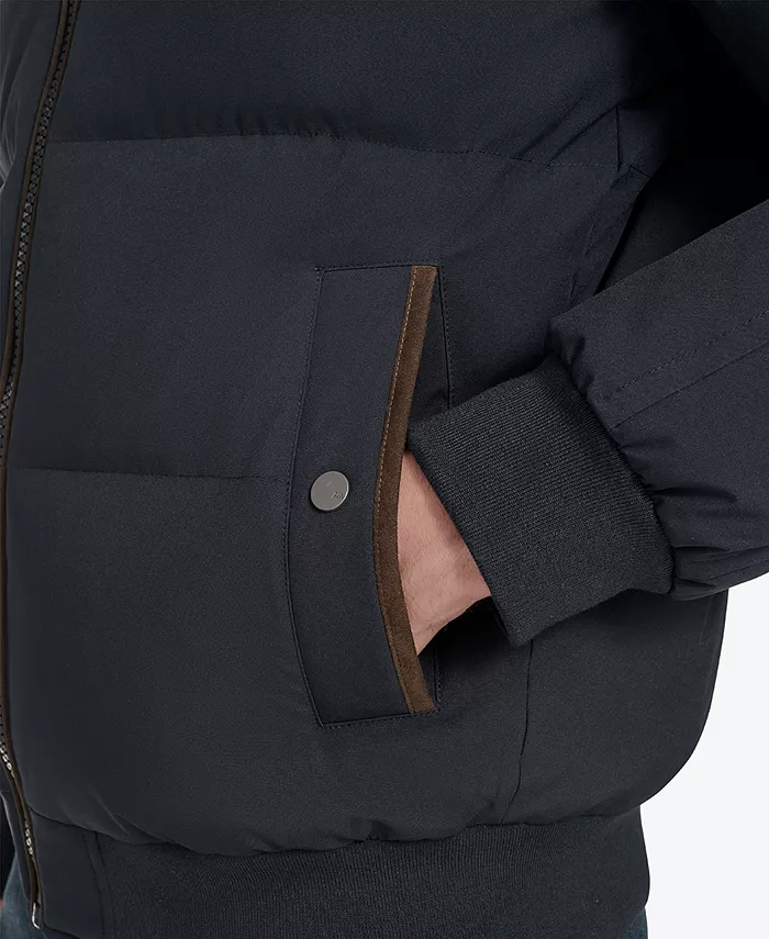 Эта куртка-бомбер Marc New York Langham, созданная для современного мужчины, ценящего тепло и стиль, с пуховым наполнителем для превосходной изоляции. Короткая длина создает обтекаемый силуэт, а отделка из искусственной замши добавляет роскошный штрих. Два прорезных кармана на груди с потайными кнопками и центральная молния спереди сочетают в себе функциональность и изысканный современный дизайн.