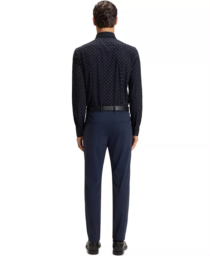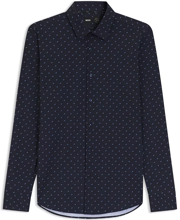 Эта рубашка BOSS Menswear с четким кроем и современным принтом обеспечивает повышенный комфорт благодаря высокой эластичности. Воротник-стойка.