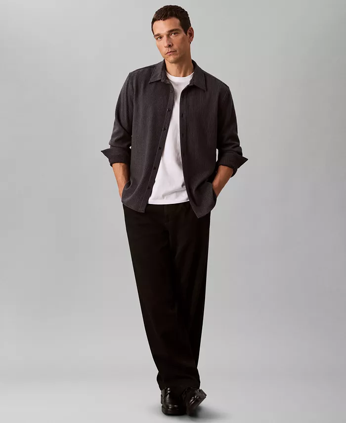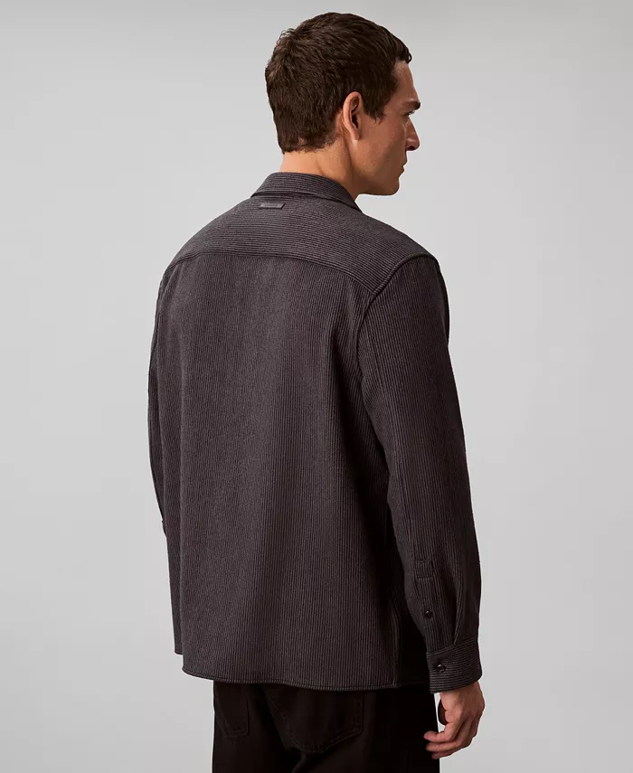 Эта рубашка Calvin Klein из мягкого вельвета выглядит изысканно и фактурно. Классический крой, заостренный воротник, застежка на пуговицы спереди, манжеты-бочонки и тональная нашивка с логотипом CK сзади на горловине - изящный фирменный элемент.