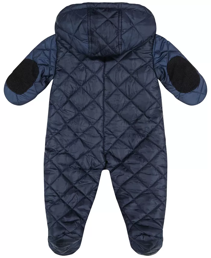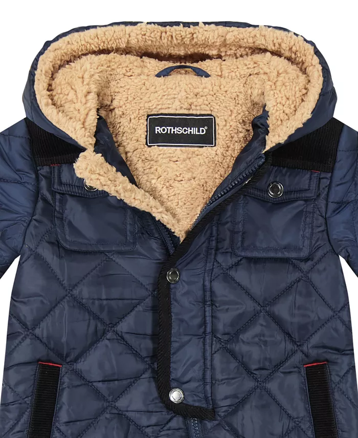 Эта стеганая куртка для коляски S Rothschild & Co с вельветовой отделкой, капюшоном на подкладке из плюшевой шерпы и застежкой на кнопки спереди. Верхние карманы, налокотники и отвороты варежек создают уютный классический образ.