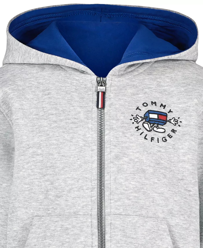 Эта толстовка Tommy Hilfiger, созданная для активных малышей, с просторным капюшоном и удобной застежкой-молнией для легкого надевания. Карманы-кенгуру согревают руки и позволяют хранить вещи, а ребристые края сохраняют форму во время любых приключений. Аккуратный вышитый логотип добавляет нотку фирменного стиля.