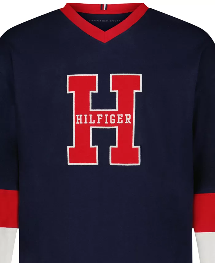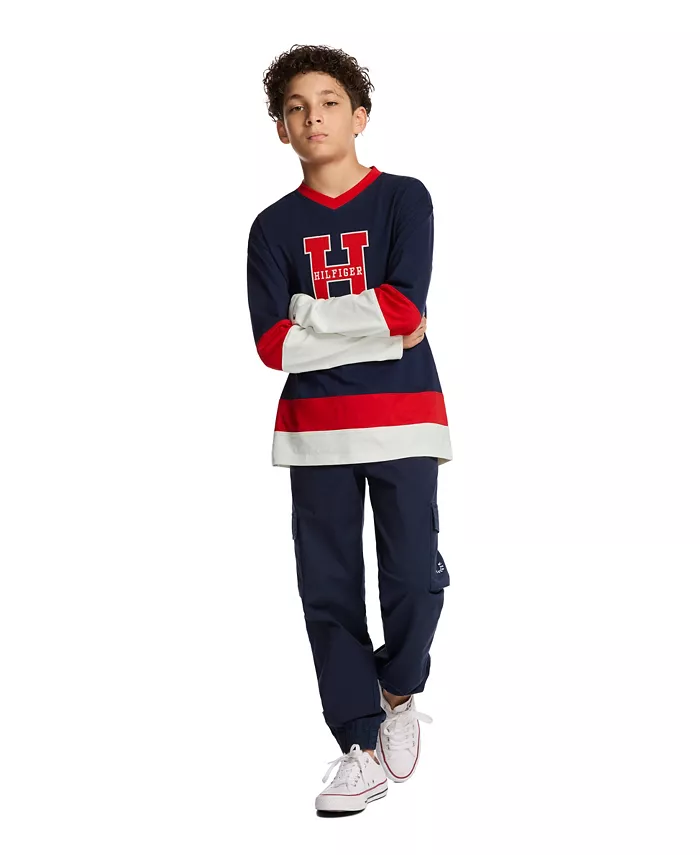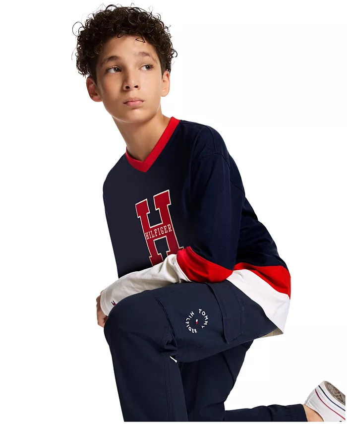 Эта футболка Tommy Hilfiger с V-образным вырезом и логотипом на груди создана для мальчиков, которые ценят сочетание комфорта и яркого стиля. Она мгновенно узнаваема. Полоска с логотипом на спине создает элегантный многослойный образ, а вышитый флажок на манжете придает футболке изысканный, но в то же время узнаваемый вид.