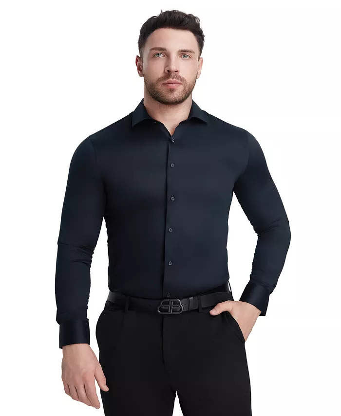 Эта элегантная и стильная рубашка Perry Ellis с острым косым воротником и скошенными манжетами. Приталенный крой придает ей элегантный и современный вид.
