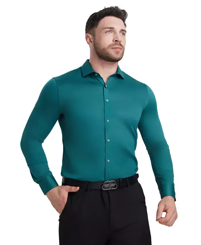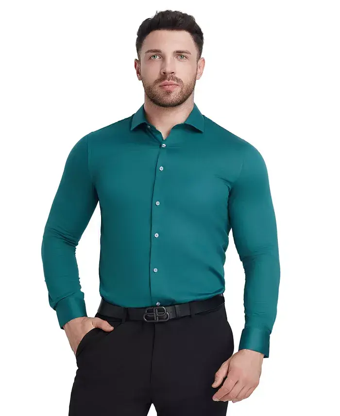 Эта элегантная и стильная рубашка Perry Ellis с острым косым воротником и скошенными манжетами. Приталенный крой придает ей элегантный и современный вид.
