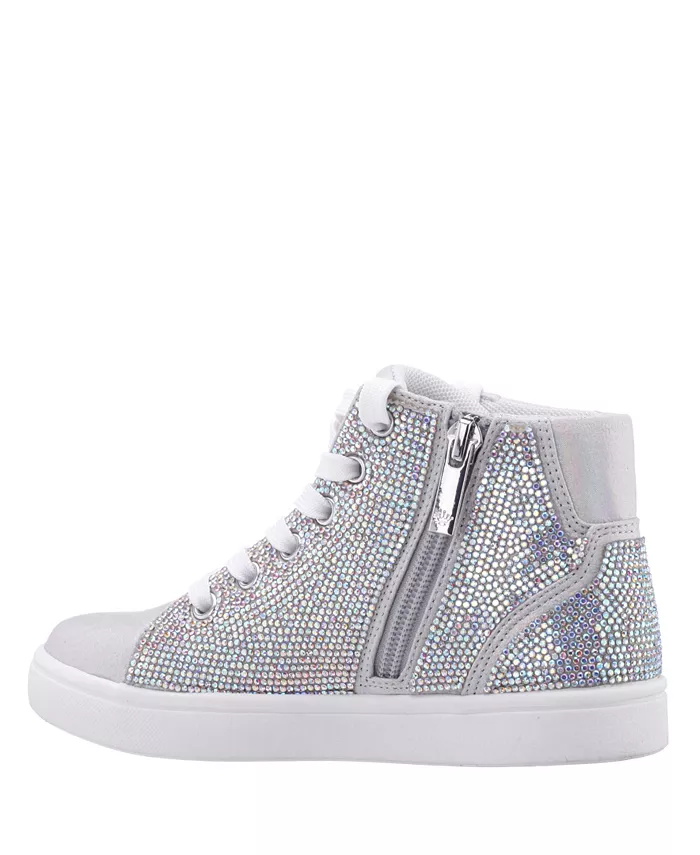 Эти блестящие и эффектные высокие кроссовки Nina украшены сверкающими кристаллами, сверкающими люверсами и фирменной молнией, что делает их стильными. Благодаря шнуровке спереди, внутренней молнии, круглому носку, стельке из пены с эффектом памяти и нескользящей подошве, они обеспечивают комфорт и безопасность как в школе, так и на особых мероприятиях.