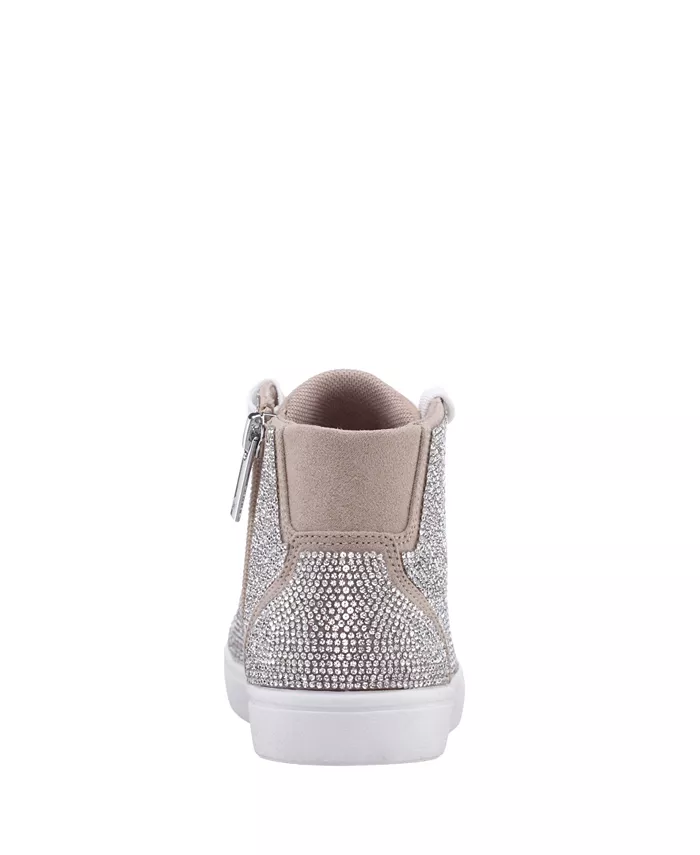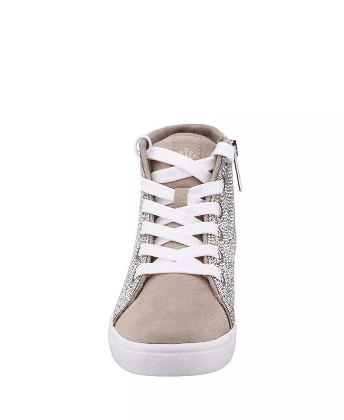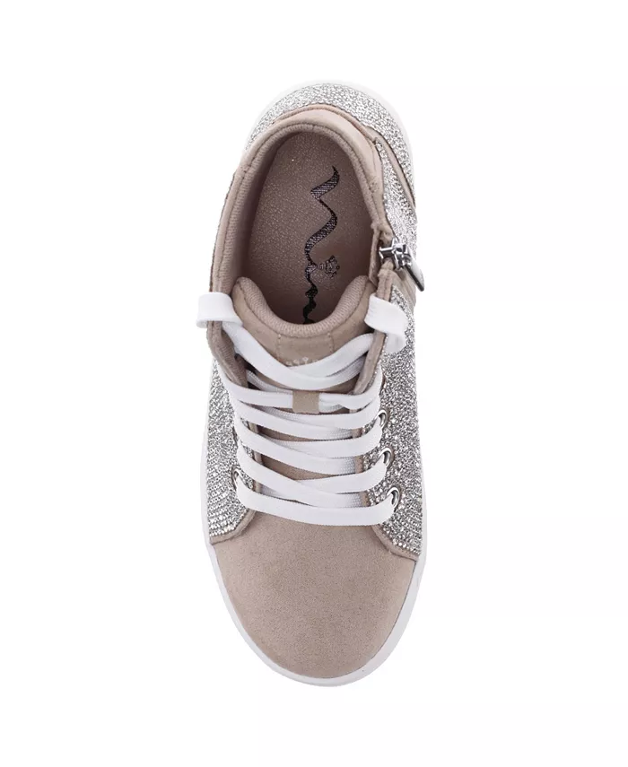 Эти блестящие и эффектные высокие кроссовки Nina украшены сверкающими кристаллами, сверкающими люверсами и фирменной молнией, что делает их стильными. Благодаря шнуровке спереди, внутренней молнии, круглому носку, стельке из пены с эффектом памяти и нескользящей подошве, они обеспечивают комфорт и безопасность как в школе, так и на особых мероприятиях.