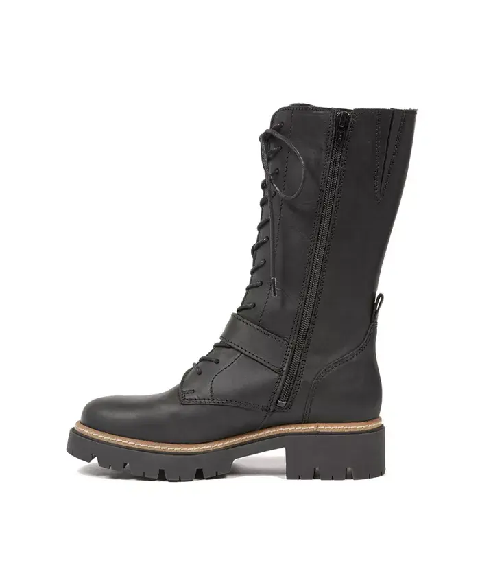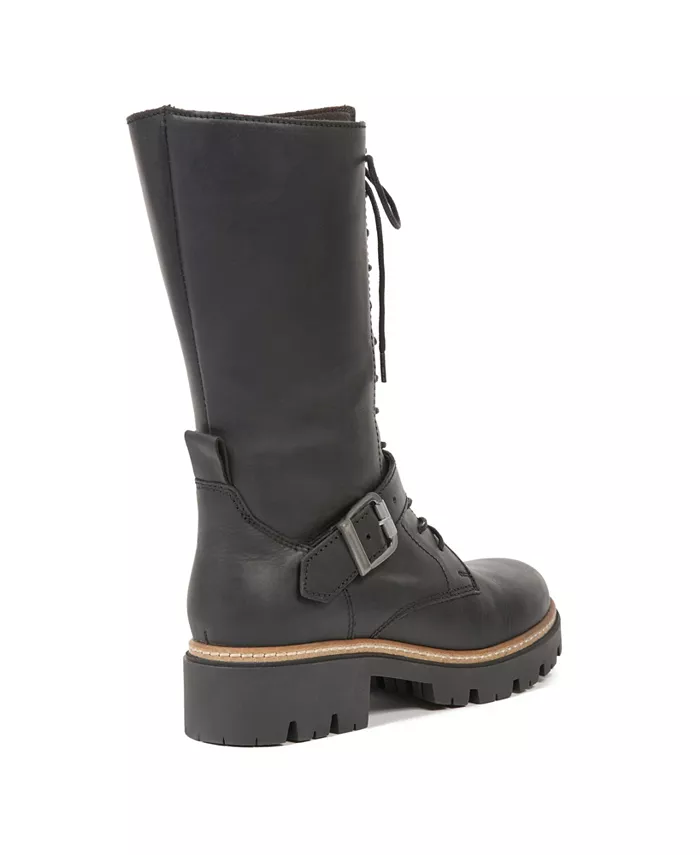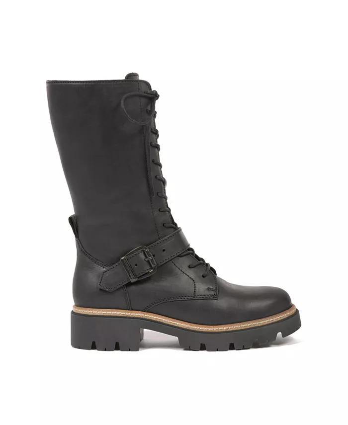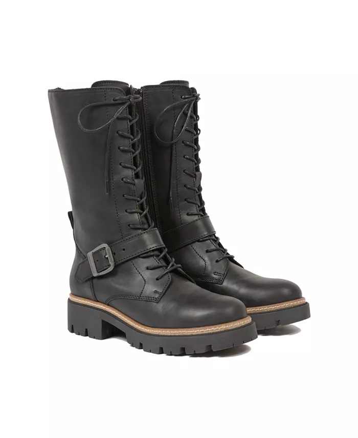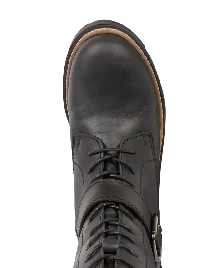 Эти ботинки до середины голени с кожаным верхом украшены шнуровкой, а также пряжками и ремешками на щиколотке. Кожаная подкладка обеспечивает комфорт, а массивная рифленая подошва и контрастный рант придают обуви прочный вид.