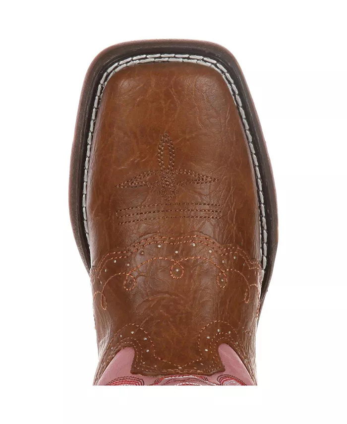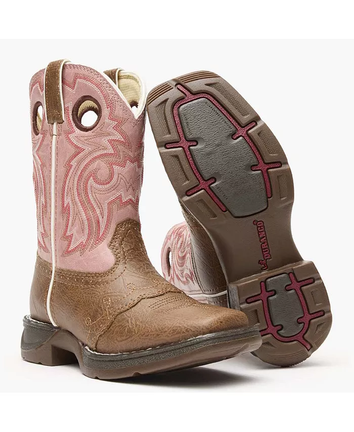 Эти вестерн-сапоги для девочек Lil' Durango красивые и практичные. Розовый ковбойский сапог и бежевые оттенки идеально сочетаются друг с другом, а декоративная строчка, фестончатый край и союзка в стиле седла добавляют очарования и подлинного западного стиля. Это идеальные детские вестерн-сапоги. Верх изготовлен из прочной искусственной кожи, что позволяет вашему ребенку наслаждаться классическим вестерн-стилем с материалом, который выдерживает любую погоду и легко чистится. Ремешки и отверстия для шнурков позволяют детям легко надевать и снимать эти ботинки без посторонней помощи. Внутренняя сетчатая подкладка легкая, дышащая и мягкая, что помогает предотвратить дискомфорт или натирание. Гибкая стелька с амортизацией обеспечивает длительный комфорт и необходимую гибкость для растущих ног. Нижняя часть ботинка имеет прочную резиновую подошву, которая обеспечивает отличное сцепление и гибкость.