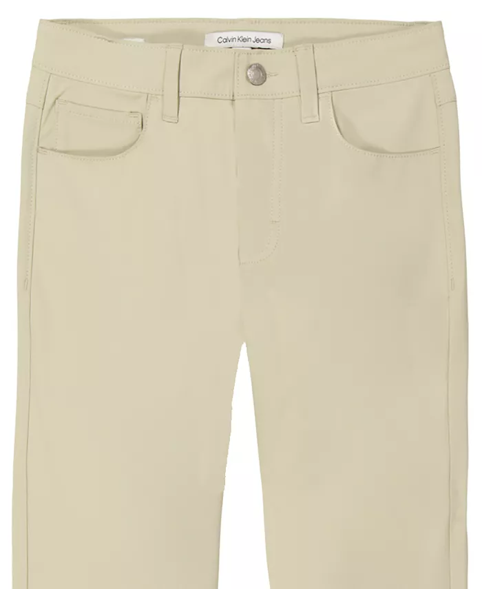 Эти облегающие брюки Calvin Klein прямого кроя с классическим пятикарманным кроем обеспечивают комфорт и эластичность. Застежка на молнию и пуговицу, шлевки для ремня и кожаная бирка с логотипом сзади.