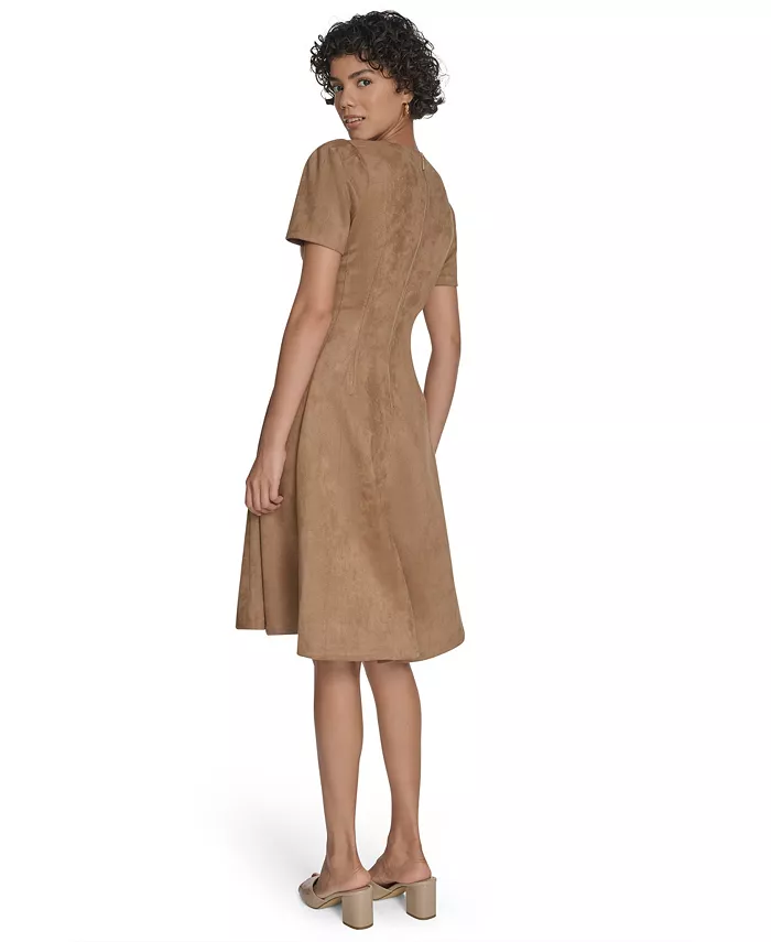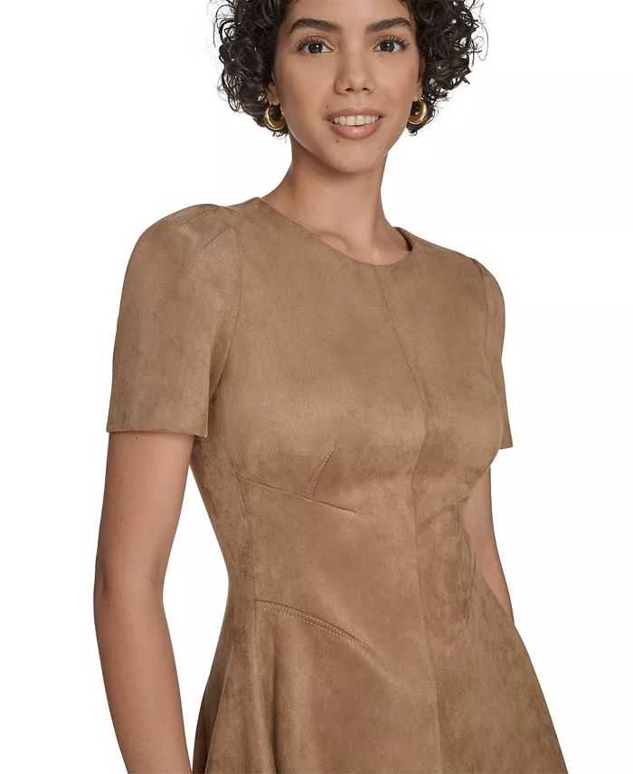 Это платье Calvin Klein с круглым вырезом и короткими рукавами обеспечивает свободу движений, обеспечивая при этом комфорт. Центральная молния сзади позволяет быстро и легко надевать его, когда вы заняты.