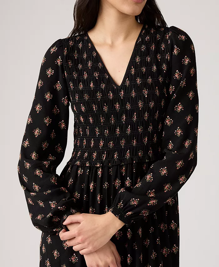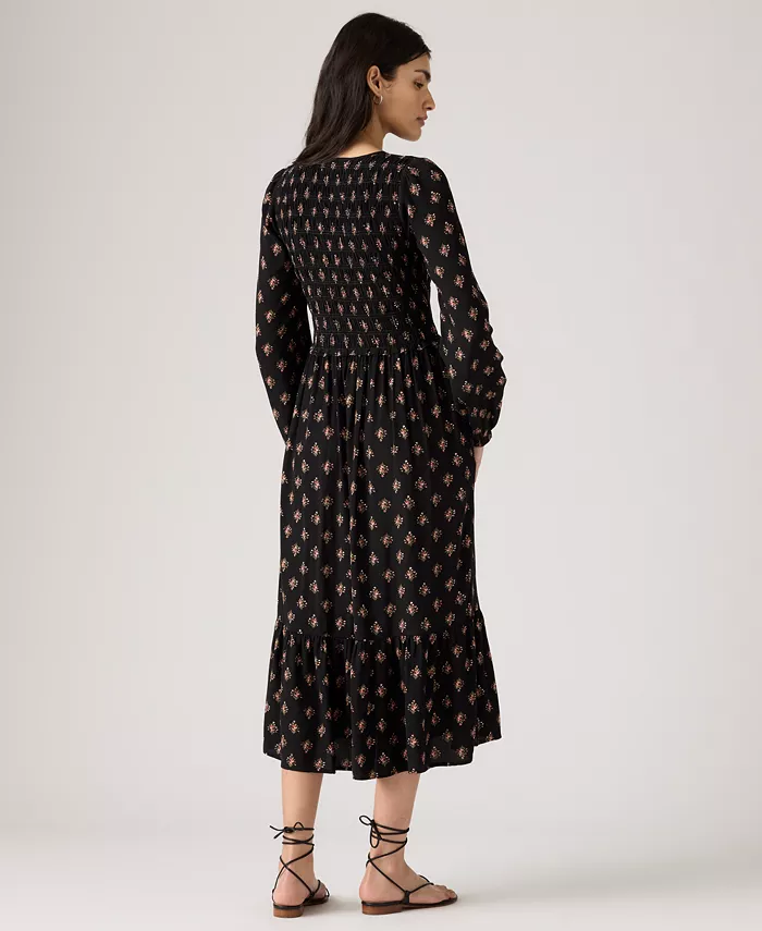 Это платье Levi'S Esme - современная интерпретация винтажного стиля прерий. Оно отличается глубоким V-образным вырезом, А-силуэтом и многоярусной юбкой длиной миди, облегающей икру. Благодаря длинным рукавам оно универсально в любое время года.
