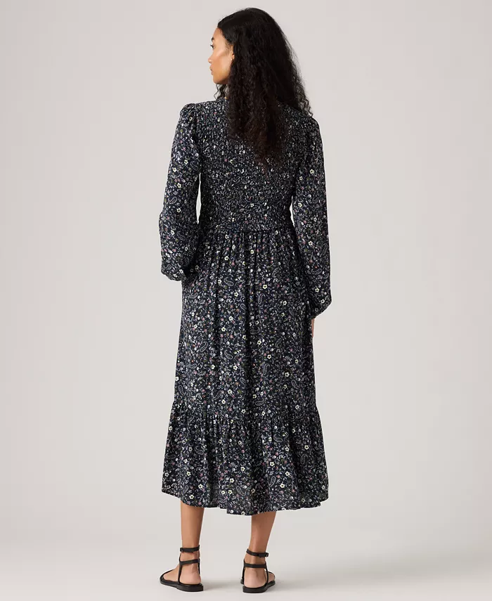 Это платье Levi'S Esme - современная интерпретация винтажного стиля прерий. Оно отличается глубоким V-образным вырезом, А-силуэтом и многоярусной юбкой длиной миди, облегающей икру. Благодаря длинным рукавам оно универсально в любое время года.