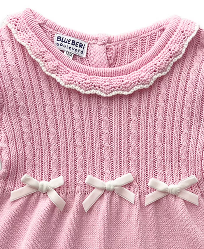 Это платье от Blueberi Boulevard - очаровательный выбор для осени: круглый вырез, длинные рукава и изящная оборка на воротнике. Изящная отделка бантом и ребристый край придают образу изящность.