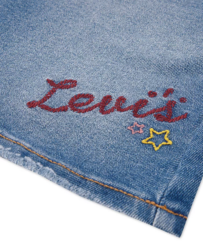 Это платье-юбка Levi'S А-силуэта из эластичного денима дополнено регулируемыми подтяжками с пряжками и передним карманом, который добавляет изюминку. Изящная вышивка роз и фирменные задние карманы придают ему классический вид, а боковые пуговицы завершают образ. Дополните его любимой футболкой или свитером, и вы готовы к выходу.