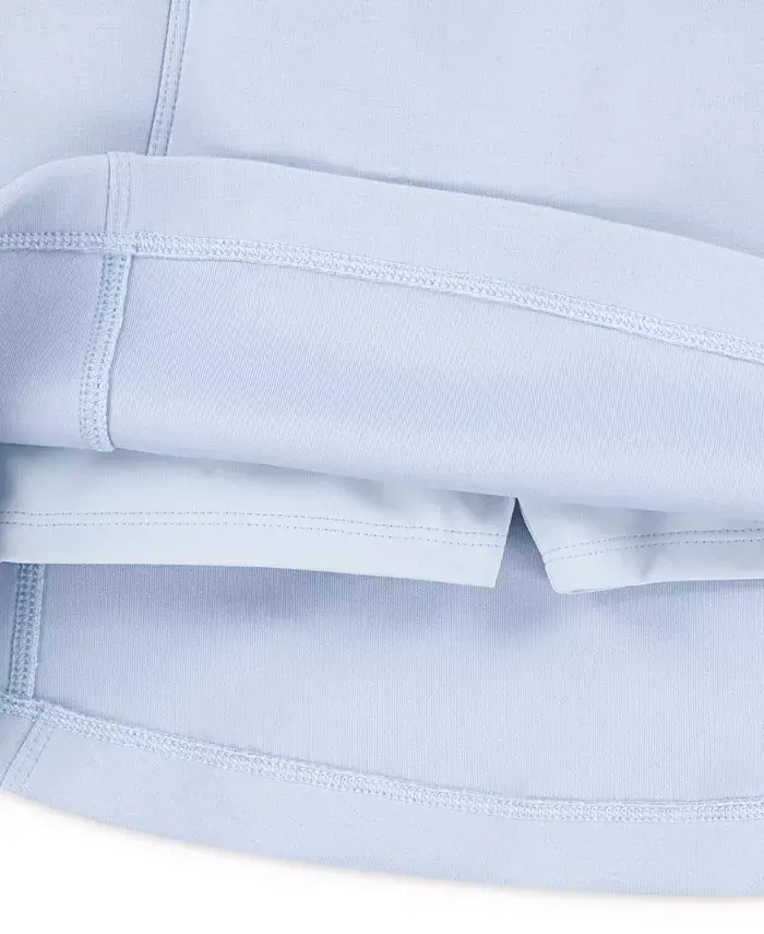 Это спортивное платье от Abercrombie сшито из гладкого трикотажа из смеси полиэстера и вискозы, который отводит влагу при движении. Оно эластичное, что облегчает надевание. Эластичный пояс с завязкой обеспечивает удобную посадку, а вшитые шорты обеспечивают полную защиту.
