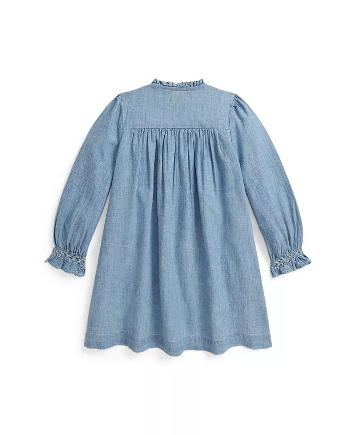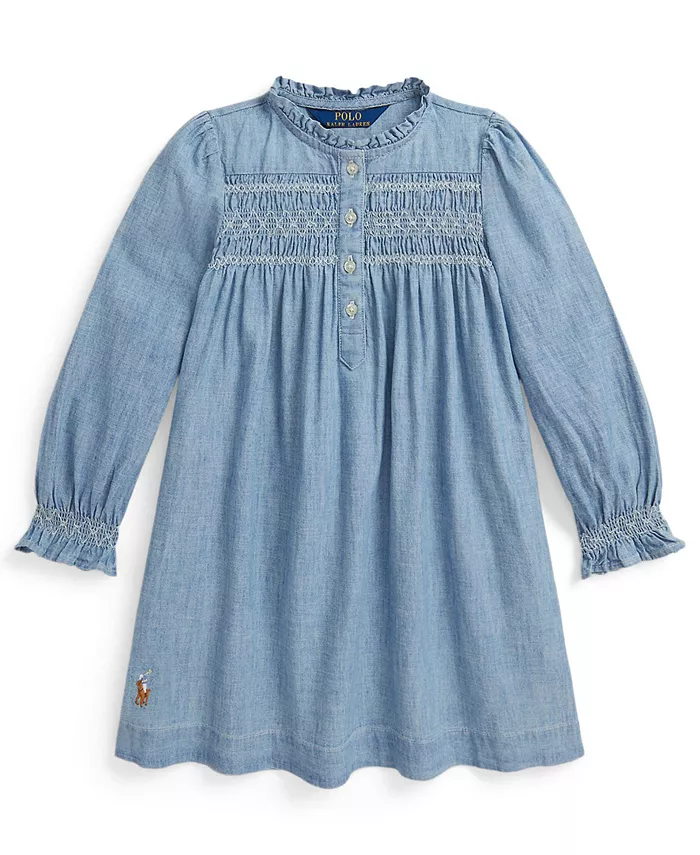 Это элегантное платье Polo Ralph Lauren с круглым вырезом, отделанным изящными оборками. Длинные рукава, создающие элегантный силуэт, неподвластны времени. Завершает образ застежка на четыре пуговицы, придающая модели нотку классической изысканности.