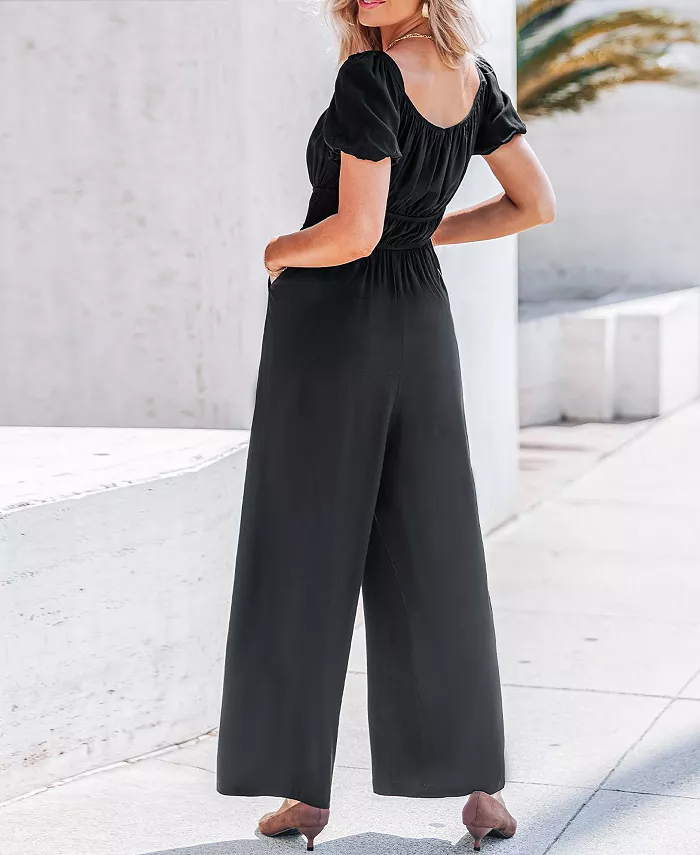 Этот комбинезон с рукавами-буфами, подчеркивающий фигуру, с облегающей талией и струящимся широким силуэтом брючин, привнесет в образ романтическую и женственную нотку, а приталенный крой сделает его универсальным как для повседневных прогулок, так и для торжественных случаев.