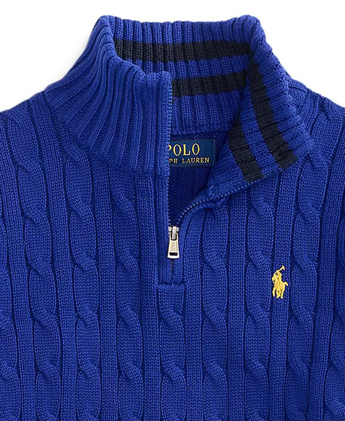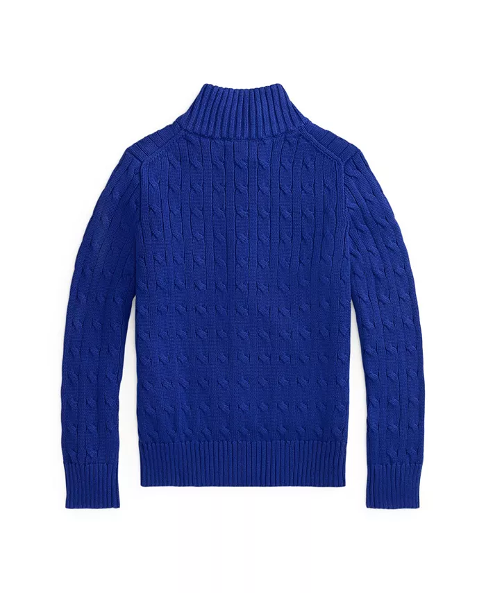 Этот свитер Polo Ralph Lauren с классической косой вязкой и застежкой на четверть молнии - вневременная вещь. Универсальный крой, длинные рукава и фирменная вышитая фигурка пони на груди.