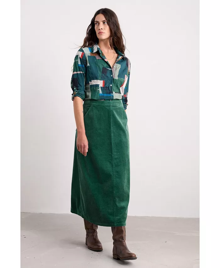 Юбка из мягкого хлопкового сирсакера, выполненная в классическом стиле, с тонкими рубчиками и простым кроем. Простой А-образный силуэт облегает талию, создавая винтажный силуэт. Мы сочетаем ее с любыми вещами: от простого трикотажа до рубашек с узорами, а в прохладное время года с удовольствием сочетаем с высокими кожаными сапогами.