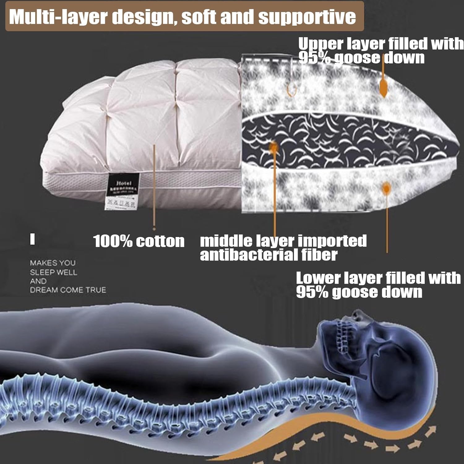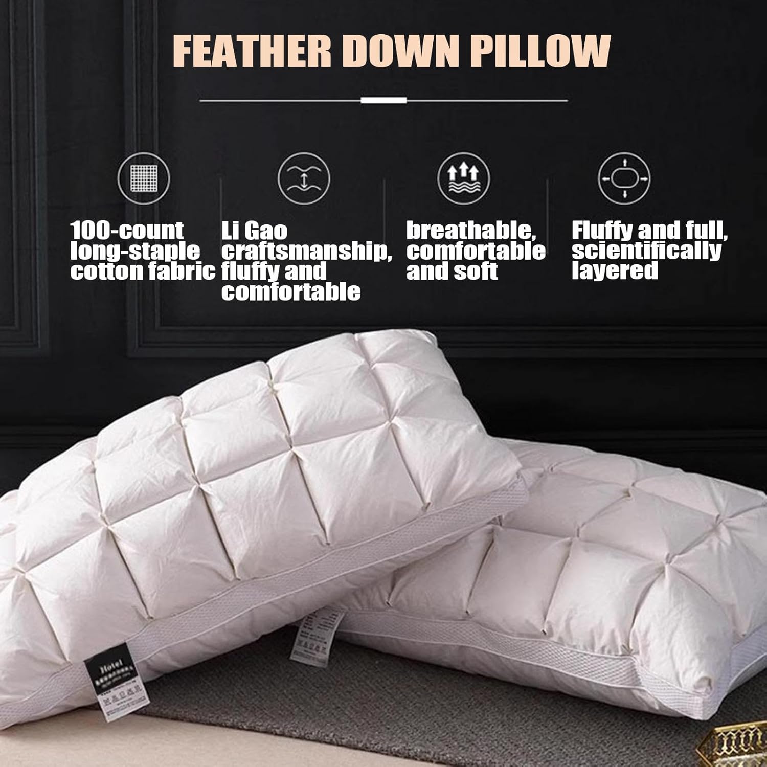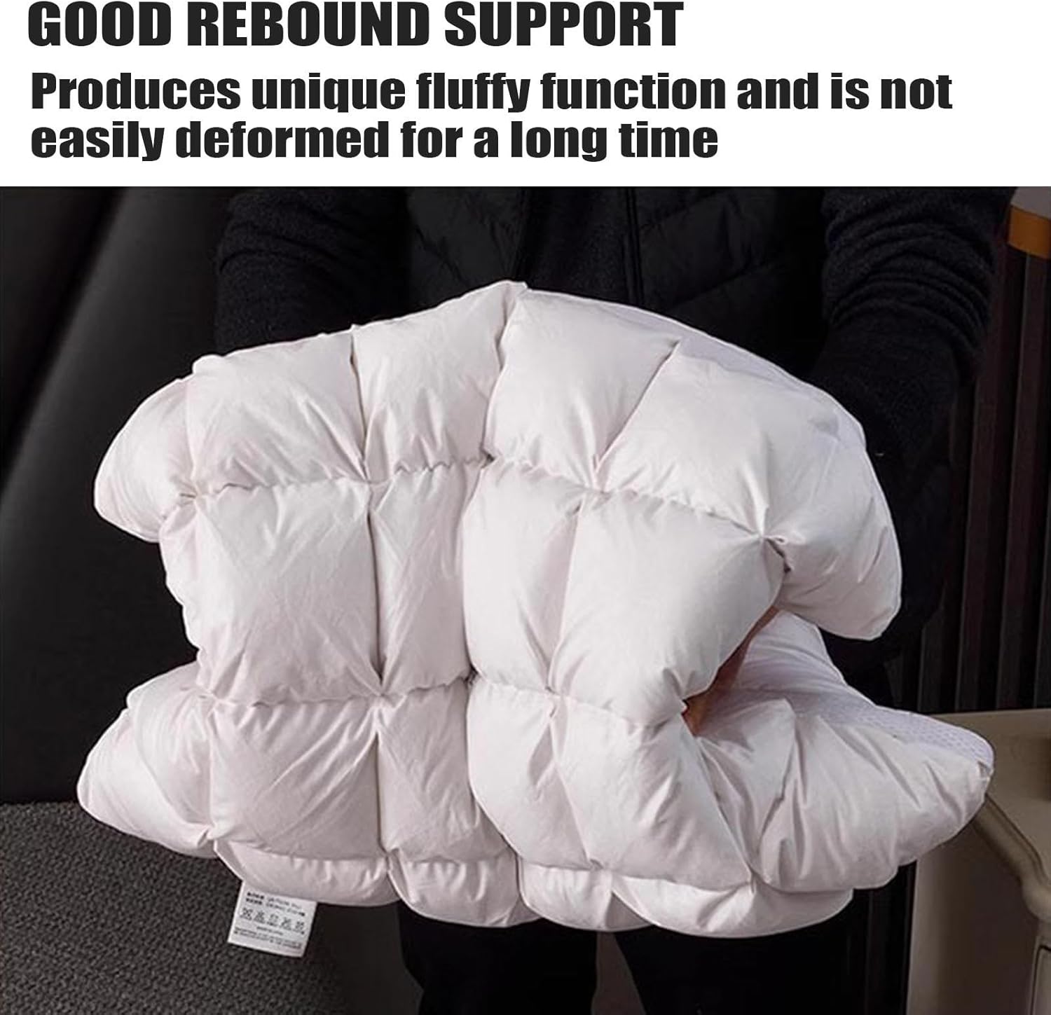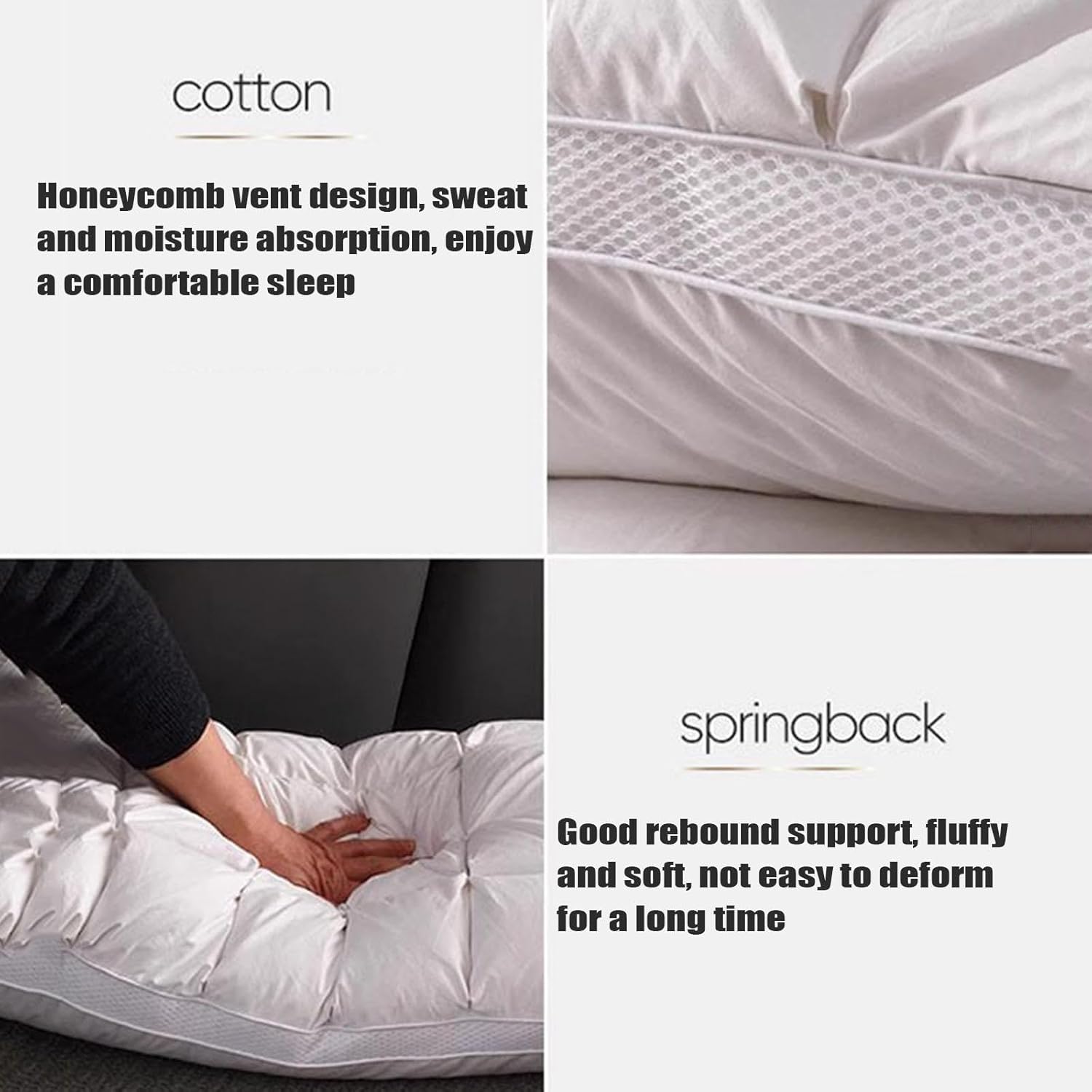 【Роскошная подушка для отеля】 — подушка из гусиного пуха премиум-класса, наполненная 95% гусиного пуха и пера и 5% высококачественного заменителя пуха, с коэффициентом упругости более 900. Спите ли вы на спине, боку или животе, вы можете насладиться роскошным комфортом пятизвездочного отеля прямо у себя дома.