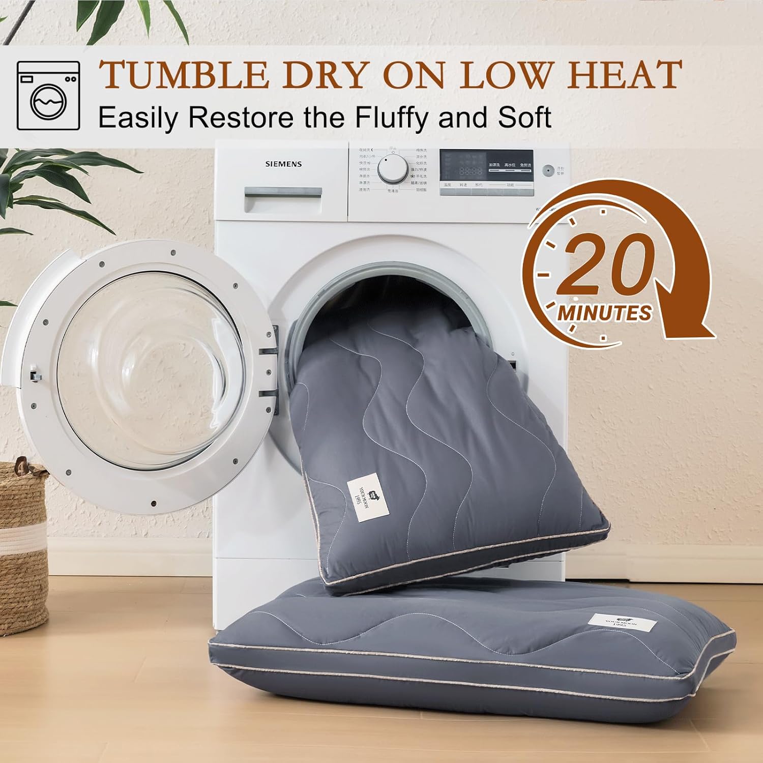 【Быстро распушивается, легко ухаживать】 Вакуумная упаковка для удобства транспортировки. После вскрытия упаковки сушите в стиральной машине при низкой температуре в течение 20 минут, чтобы восстановить форму. Можно стирать в стиральной машине, легко ухаживать, сохраняя свежесть и комфорт подушки каждую ночь.