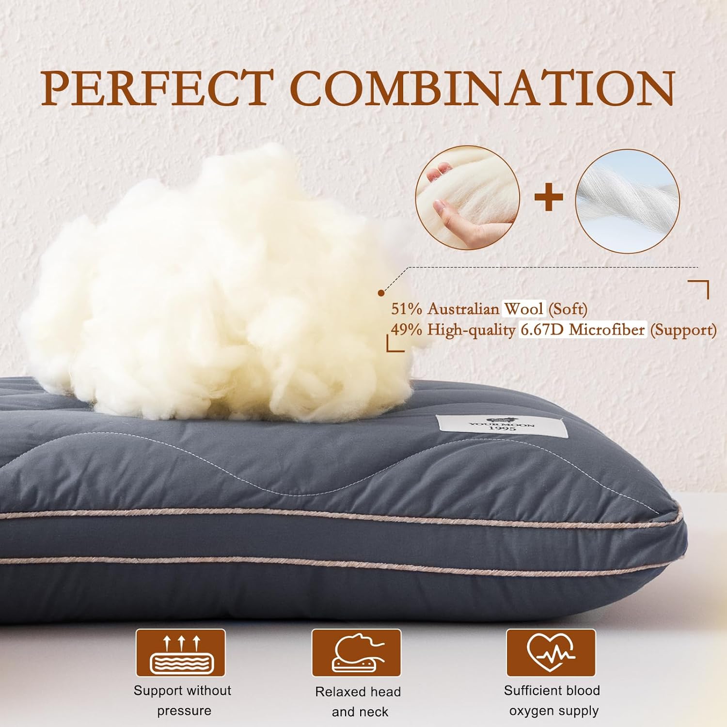 【Наполнитель с улучшенной поддержкой】30 x 20 дюймов. Наполнитель из 51% австралийской шерсти и 49% микрофибры 6.67D обеспечивает чуть более плотную поддержку, чем наша мягкая версия, — идеально для тех, кто предпочитает мягкое ощущение, не сваливающееся подушкой.