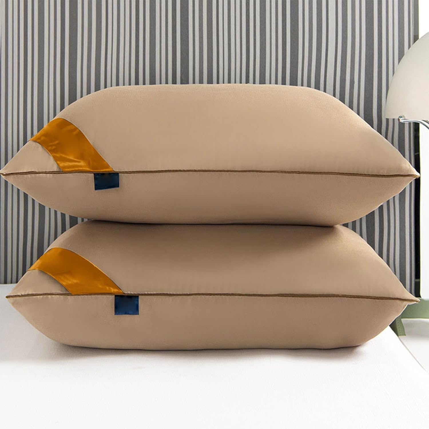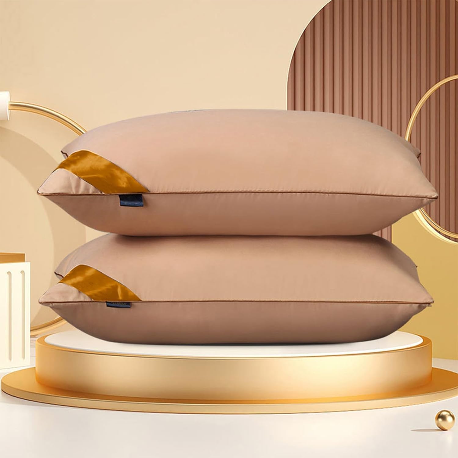【Шелковистая мягкая ткань】Передайте спокойную элегантность и шелковистую мягкость наших пуховых подушек для настоящей роскоши.