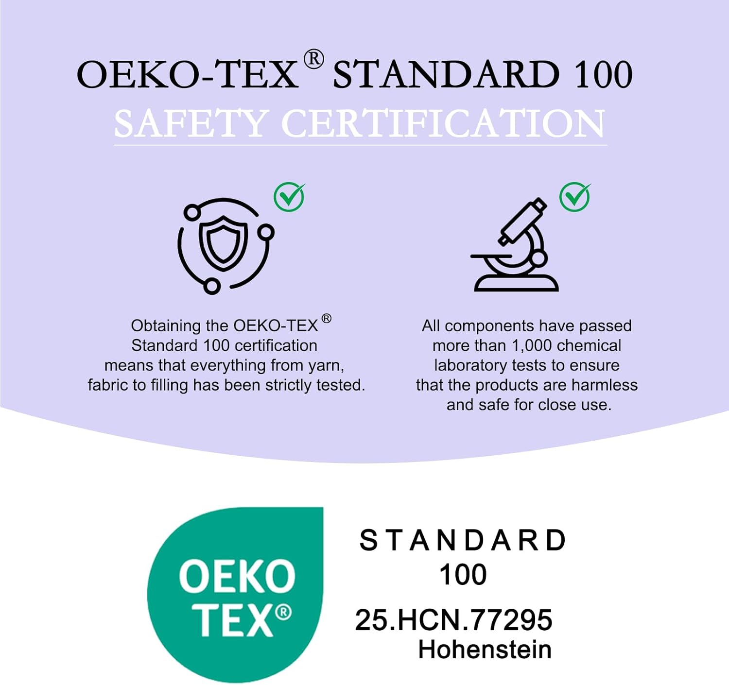【Материалы сертифицированы по стандарту OEKO-TEX】Все компоненты сертифицированы по стандарту OEKO-TEX Standard 100, что гарантирует безопасность, экологичность и отсутствие вредных веществ в ткани и наполнителе.