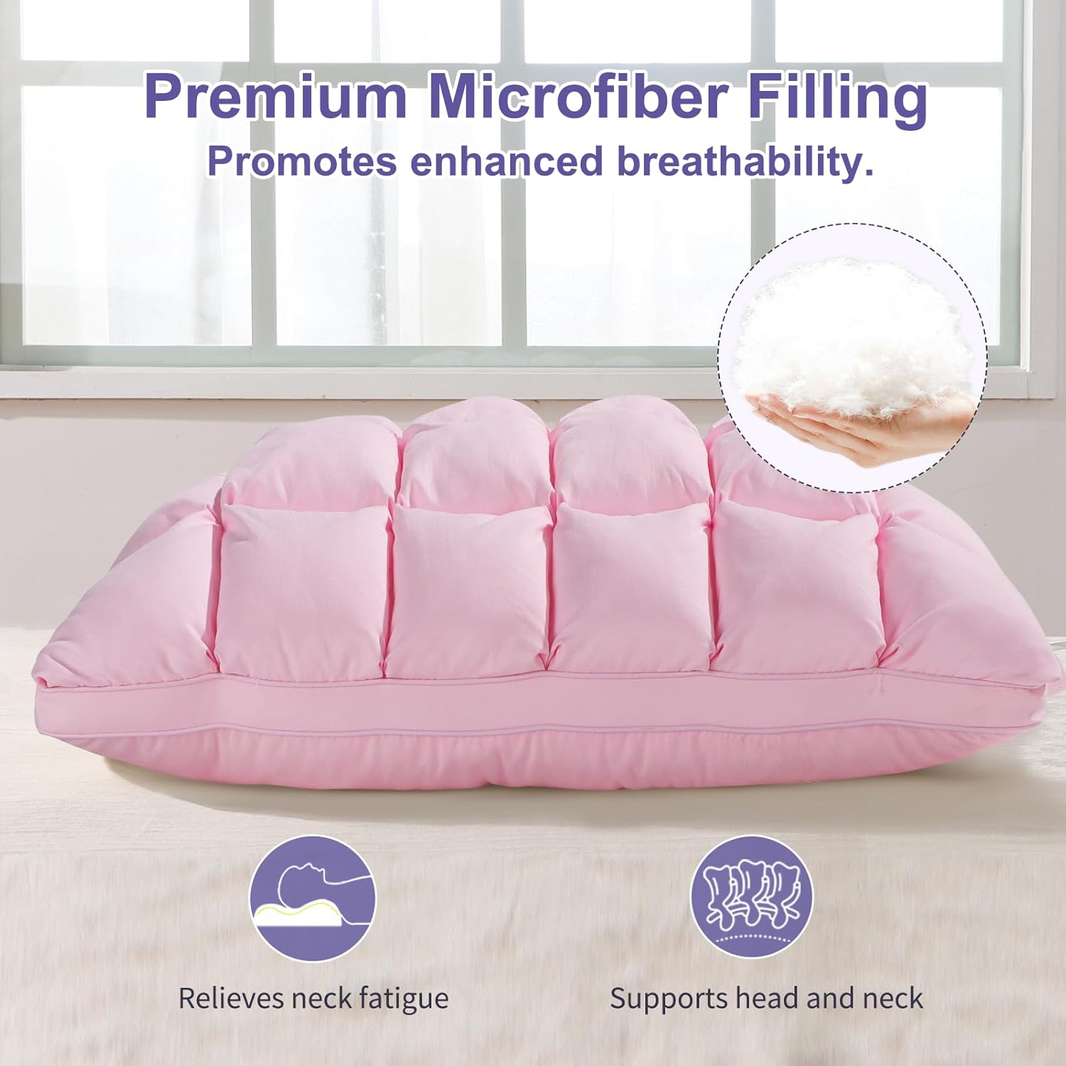 【Сбалансированный комфорт и поддержка】Эти подушки разработаны для мягкой поддержки головы, шеи и плеч, подходят для тех, кто спит на боку, спине и животе, помогая снизить давление и улучшить качество сна.